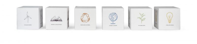 Sedan några år tillbaka har vi delat in vårt hållbarhetsarbete i sex olika fokusområden. De handlar om nya och återvunna material, om cirkulär design, om effektiv logistik, och om hållbar energi i produktionen. Men de handlar också om ansvar för naturresurser om respekt och transparens i värdekedjan.